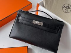 愛馬仕凱莉女包 Hermès Mini Kelly Pochette Swift Noir Silver Hardware