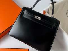 香港愛馬仕凱莉包25價格 Hermes Kelly 25 Sellier Box calf Noir Silver Hardware