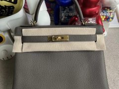 Hermes Kelly 28cm Togo 原廠小牛皮 S2 風衣灰 Trench 金扣 全手工蜜蠟線縫製