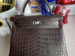 愛馬仕凱莉包尺寸 Hermes Kelly 28cm 47 Chocolate 羅鱷魚手工蜜蠟線縫製 客定製出