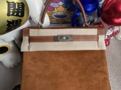 香港淺水灣Hermes Kelly 28 Doblis Suede Barenia Natural 馬鞍皮 37 gold 金棕色 銀扣