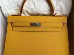香港南區深水灣 愛馬仕 Hermes Kelly 28cm Epsom 9D Amber 琥珀黃 金扣