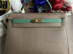 愛馬仕凱莉包專櫃價格 Hermes Kelly 32 HSS Chevre 18 Etoupe Z6 孔雀綠 馬蹄印
