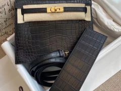 愛馬仕 Hermes Kelly Danse 22cm 霧面方塊 美洲鱷魚 CC89 Noir 黑色 金扣