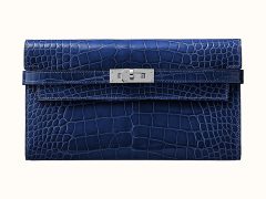 Hermes Kelly Classic Wallet crocodile skin CK73 Bleu Saphir 寶石藍