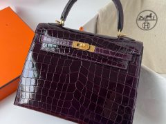 愛馬仕包包圖片加價格 Hermès Kelly Sellier 25 玫红紫 Shiny Nilo Crocodile