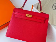 愛馬仕包包官方旗艦店官網 Hermès Kelly Sellier 25 Epsom Rose casaque 國旗紅