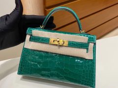 Qatar Doha Hermes Kelly Mini II 2代 6Q Very Emerald 翡翠綠 亮面美洲鱷魚