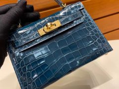 Hermes Kelly Mini II 2代 亮面美洲鱷魚 W0 Vert Bosphore 博斯普魯斯綠 金扣