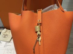 愛馬仕女包菜籃子水桶包手提包 Hermes Picotin Lock 22 Orange Clemence
