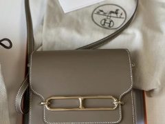 愛馬仕豬鼻子包 官網價格 Hermès Roulis Mini Swift 大象灰 Etoupe 金扣