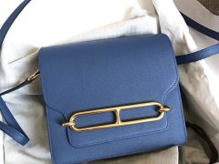愛馬仕豬鼻子包價格 Hermès Roulis Mini Evercolor R2 Blue agate 金扣