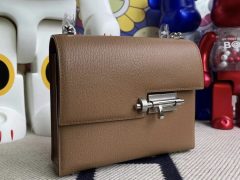 新加坡愛馬仕Hermes Verrou Mini Chevre Mysore山羊皮2J Quebracho雀木色銀扣