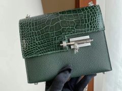 Hermes Verrou Mini 6O Vert cyprès 松柏綠 Touch 亮面美洲鱷魚/山羊皮金扣