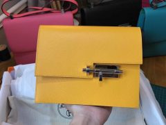 Hermes Verrou 手包 又叫手槍包插銷包 9V Jaune Dor 太陽黃色 Epsom 銀色金屬