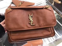 YSL Niki bags中號復古褶皺和絎縫幹邑色 COGNAC真皮 鏈條包 4989130