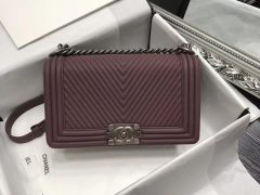 小香 Le boy bag25cm 進口暗紅色胎牛V字型 單肩鏈條包