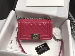 小香中號25CM Leboy bag口蓋包漆皮櫻桃粉漆牛皮蓋底羊皮銀色金屬