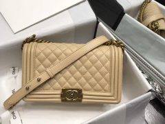 中號25CM Leboy bag口蓋包 杏色魚子醬顆粒壓花小牛皮與金色