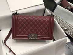 小香中號25CM Leboy bag口蓋包 枣红色魚子醬顆粒壓花小牛皮银色金屬