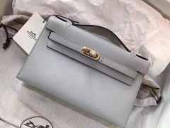 愛馬仕宴會手拿包Mini Kelly Epsom冰川灰 冰川藍8U Blue Glacierw金扣