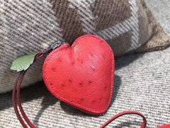 Hermes birkin kelly包 掛飾 國旗紅色南非鴕鳥皮 零錢包 草莓形狀掛件
