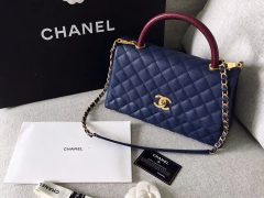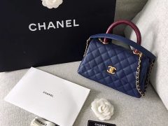 chanel復古手提包 中號深藍色小牛皮 蜥蜴皮 coco handle bag口蓋包