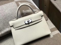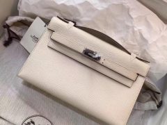 愛馬仕 Mini Kelly Epsom 奶昔白銀扣 CK10 Craie GHW 氣質素色宴會手拿包