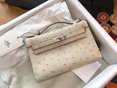 愛馬仕迷妳凱莉包 Hermes Mini Kelly 鴕鳥CK10 Craie 奶昔白 GHW 素色系銀扣鴕鳥新色