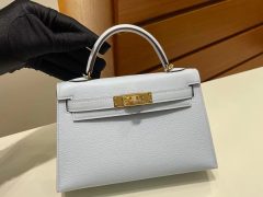 愛馬仕二代凱莉包尺寸 Hermès Kelly Mini II 2代 Chevre T0 Blue Brume 金扣