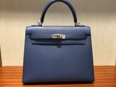 愛馬仕凱莉包包什麼顏色好看 Hermes 7R霧霾藍 凱莉包Kelly 25cm Epsom手掌紋