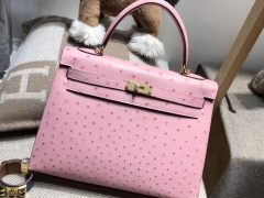 愛馬仕凱莉包Hermes Kelly 32 鸵鸟皮 OSTRICH 1Q Rose Confetti奶昔粉色金扣