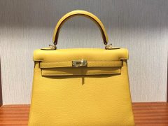 愛馬仕凱莉包 Hermes Kelly 25cm 9D琥珀黃 Togo 禦用原廠小牛皮 金扣