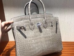 愛馬仕包包官網 Hermes Birkin 25 Bag CK81斑鳩灰 亮面倒V澳洲灣鱷 銀扣