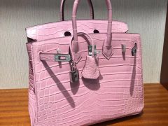 全世界最貴的包包 愛馬仕Hermes Birkin 25 霧面兩點鱷魚5P櫻花粉配南非水晶鉆