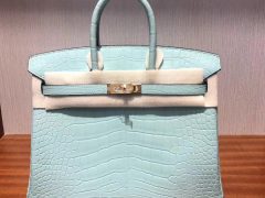 愛馬仕加拿大官網 Hermes Birkin 25亮面方塊鱷魚皮 6U薄荷綠/湖水綠