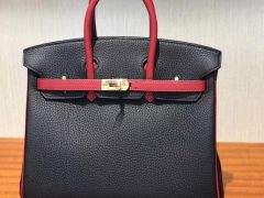 愛馬仕鉑金包Hermes Birkin 25cm Bag Togo小牛皮 CK89黑色/Q5國旗紅