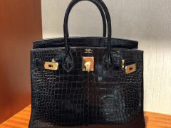 Hermes Birkin Bag 30cm CK89黑色 亮面倒V 澳洲灣鱷 金扣 完美紋路