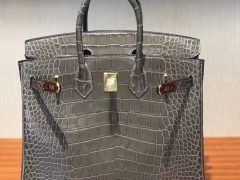 愛馬仕鱷魚皮鉑金包 Hermes Birkin 25 Bag 亮面兩點鱷魚皮C81斑鳩灰