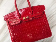 Hermes Birkin Bag 25cm 亮面兩點 尼羅鱷魚 CK95法拉利紅 Braise