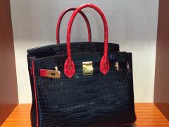 香港國際機場專賣店Hermes Birkin 25 Bag 兩點鱷魚皮CK89黑色/CK95法拉利紅