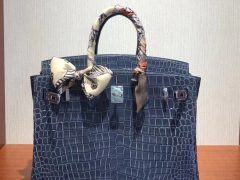 愛馬仕鱷魚皮鉑金包Hermes Birkin 25cm Bag 亮面兩點鱷魚皮 N7風暴藍