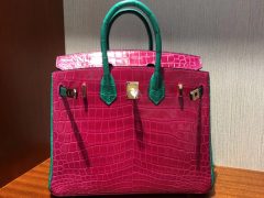 Hermes Birkin 25cm J5天方夜譚粉紫/6Q翡翠綠雙拼色 亮面兩點 尼羅鱷魚金扣