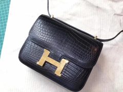 Hermes康斯坦斯包 Constance 18(19)雾面鳄鱼皮革 黑色CK89 金扣