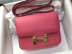 Hermes康斯坦斯包 Constance 18(19)Epsom 8W新唇膏粉 Rose Azalee 金扣