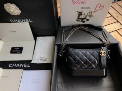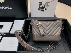 香奈兒小號尺寸黑色小牛皮 Gabrielle bag流浪包 银色與金色金屬