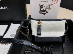 香奈兒小號尺寸 小牛皮白色配黑色 Gabrielle bag流浪包 銀色與金色金屬
