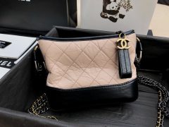 香奈兒小號尺寸杏色配黑色 Gabrielle bag流浪包小牛皮 銀色與金色金屬