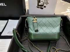 香奈兒GABRIELLE流浪包 V型車縫線 墨綠色 復古小牛皮