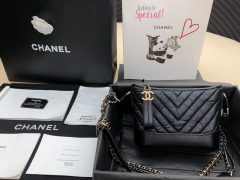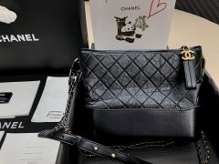 香奈兒 Gabrielle包包圖片價格 中號流浪包 黑色復古小牛皮